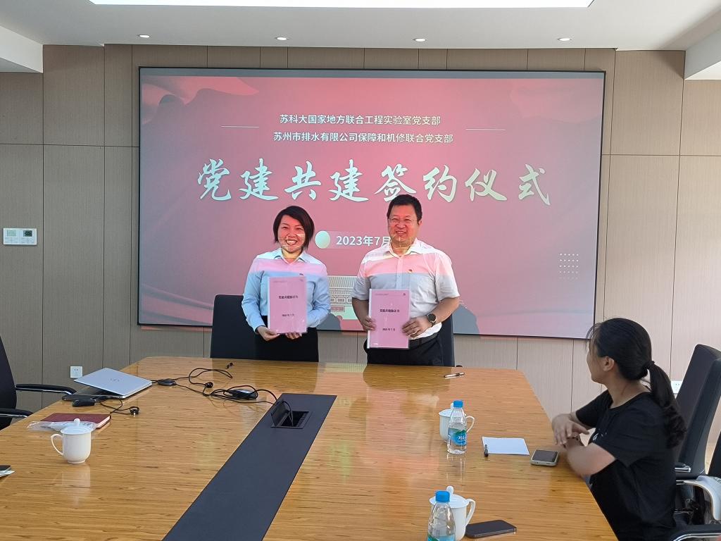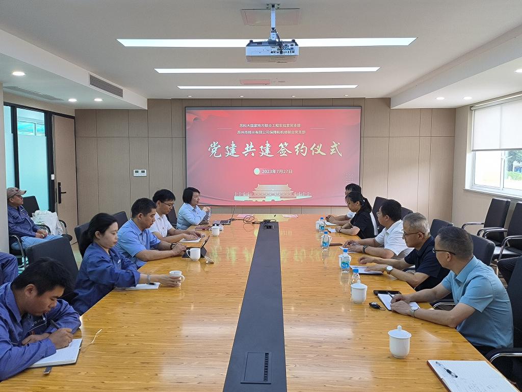 党委书记费忠民、院长李大鹏,副院长潘杨、苏州市排水有限公司副总经理黄继会、苏州市排水有限公司生产处副处长张俊、苏州市排水有限公司保障和机修联合党支部书记陈丽娟等出席共建仪式,会议由陈丽娟主持。