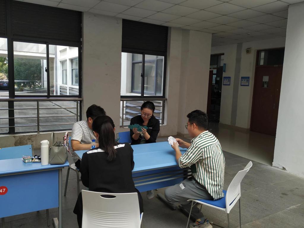 的传统文体项目,一方面丰富教职工的业余文化生活,增进同事间的交流与合作,提高团队凝聚力,另一方面提前选拔种子选手,为参加学校掼蛋比赛做准备。