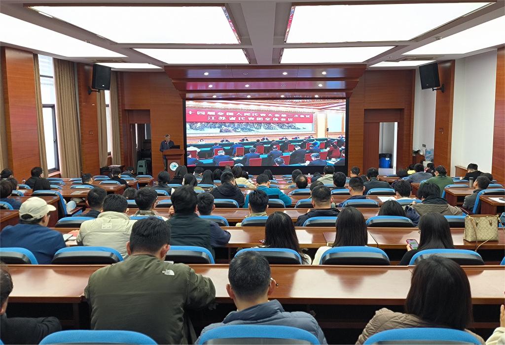 3月27日,鉴黄师 召开全体教职工大会,在鉴黄师 二楼报告厅集中学习习近平总书记参加江苏代表团审议时的重要讲话精神。