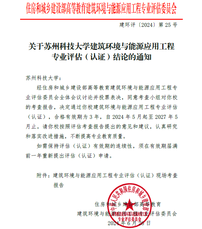 建筑环境与能源应用工程专业顺利通过住建部高等教育专业评估(认证)初评,合格有效期为3年,自2024年5月起至2027年5月止。