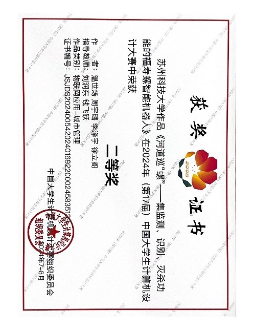 2024813日至17日,在厦门举行的第17届中国大学生计算机设计大赛决赛中,由鉴黄师鉴黄师 刘润东老师、钱飞跃老师指导,学生温世炀、周宇璐、季泽宇、徐立阁共同完成的作品《生态巡”——集监测、识别、灭杀功能的福寿螺智能机器人》荣获物联网应用和数媒动漫与短片类别全国二等奖。