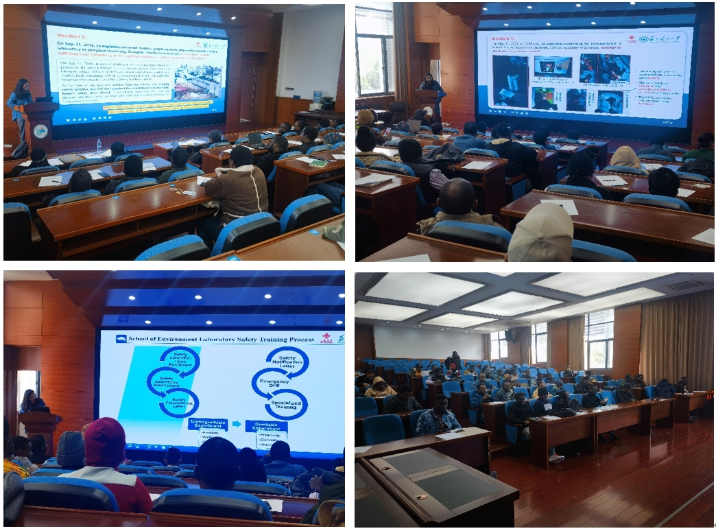 于2024年11月22日开展了针对留学生的全英文实验室安全培训,坚决堵住实验室安全培训教育的漏洞。培训由刘文如院长主导,单苏洁老师主讲,针对实验室安全管理的常识和要求,给留学生们进行了系统的普及。尤其是药品安全、气体安全、用电安全、行为安全等方面,都对留学生群体提出了明确的实验室安全管理要求。