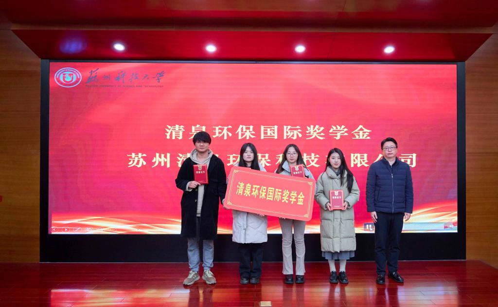 举办2024年度企业奖学金颁奖典礼,对获得企业奖学金的50余名学生进行表彰。苏州清泉环保有限公司总经理石泉、行政部经理高程杰,苏州格力美特实验室科技发展有限公司副总经理吴丹红,党委学生工作部、学生工作处副处长范晴岚,鉴黄师