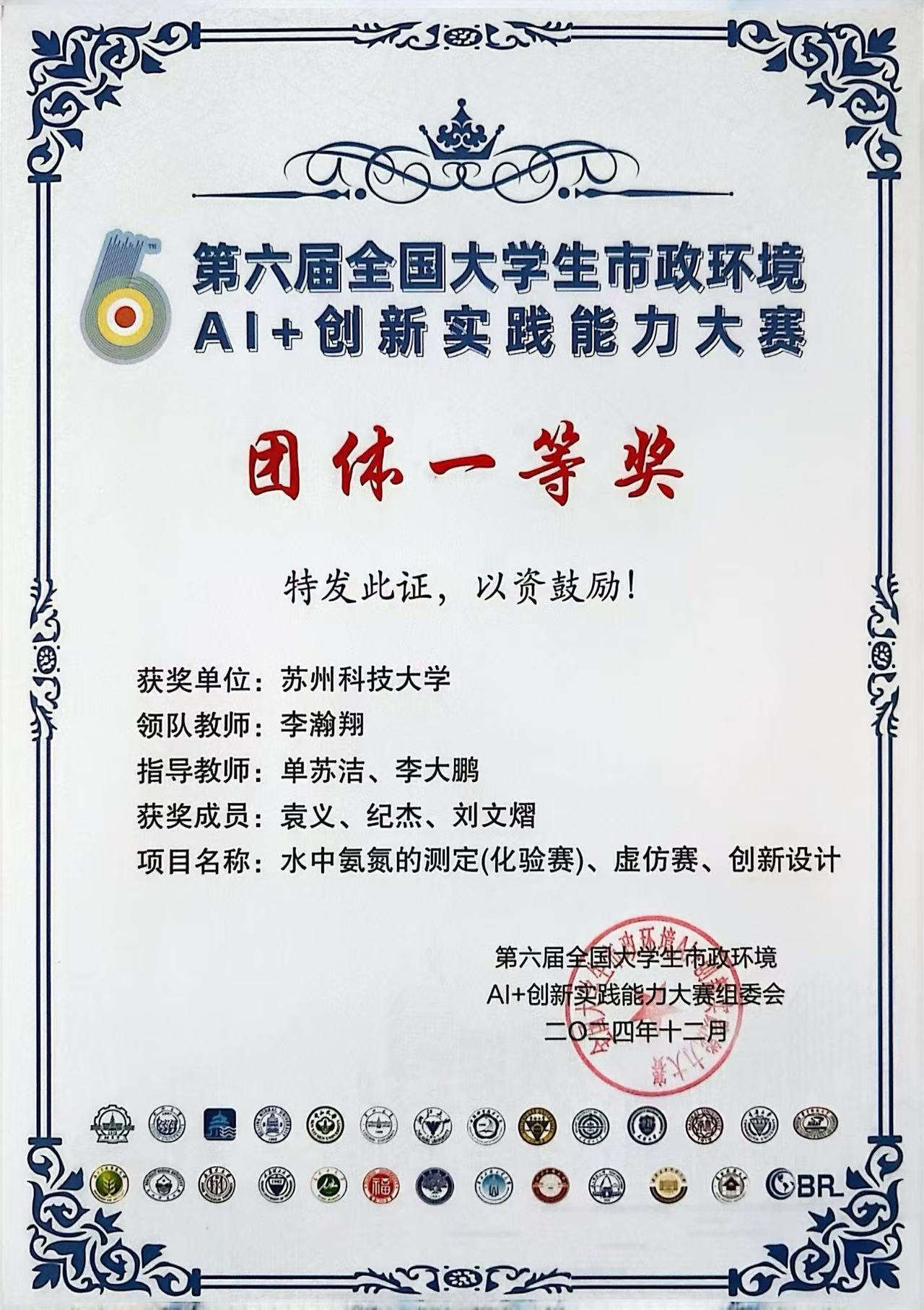2024年12月27日至29日,第六届全国大学生市政环境AI+创新实践能力大赛决赛在哈尔滨工业大学举行。来自鉴黄师鉴黄师 的袁义、纪杰和刘文熠同学获团体一等奖(领队教师:李瀚翔,指导教师:单苏洁、李大鹏)。