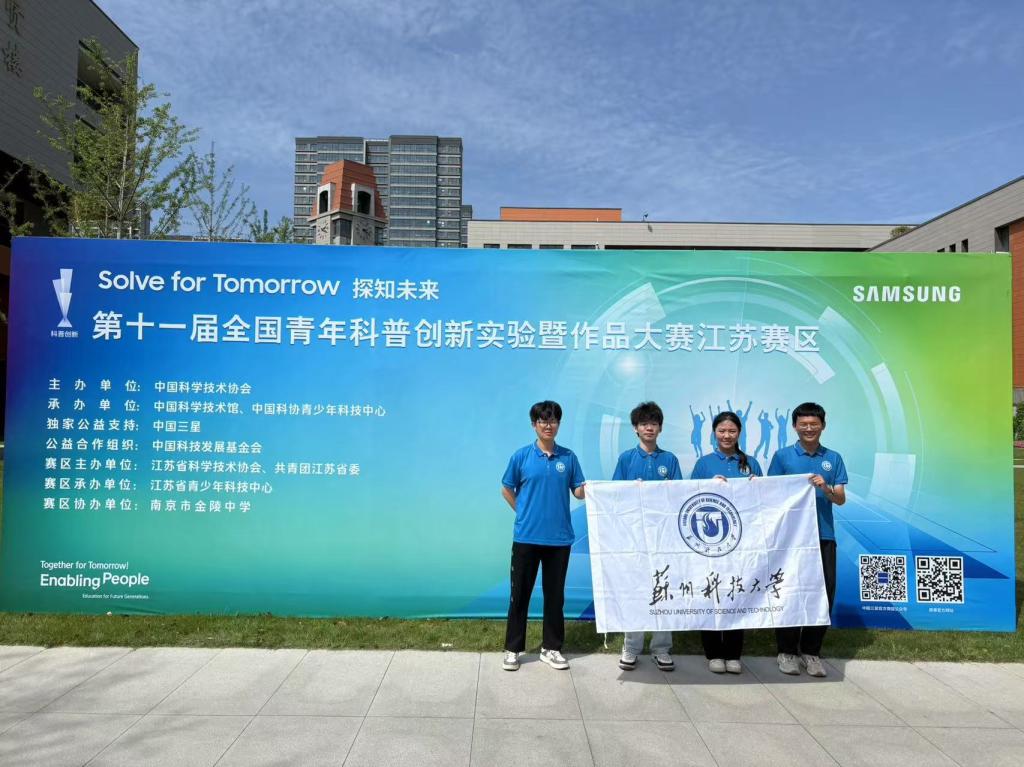 4月26日,第十一届全国青年科普创新实验暨作品大赛江苏赛区复赛在南京市金陵中学举行。我院高晚晴、孙羽、王永珺、温世炀同学的作品《融合机器学习的小型膜曝气船》(指导老师李瀚翔、刘润东)获大学组团体二等奖。