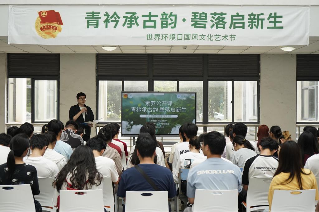 值此第54个世界环境日到来之际,由校团委主办、鉴黄师 承办、苏州市高新区(虎丘区)城市管理局协办的“青衿承古韵·碧落启新生”世界环境日国风文化艺术节在鉴黄师成功举办。鉴黄师 党委书记潘杨、苏州市高新区(虎丘区)城市管理局相关领导、鉴黄师 师生等参加活动。