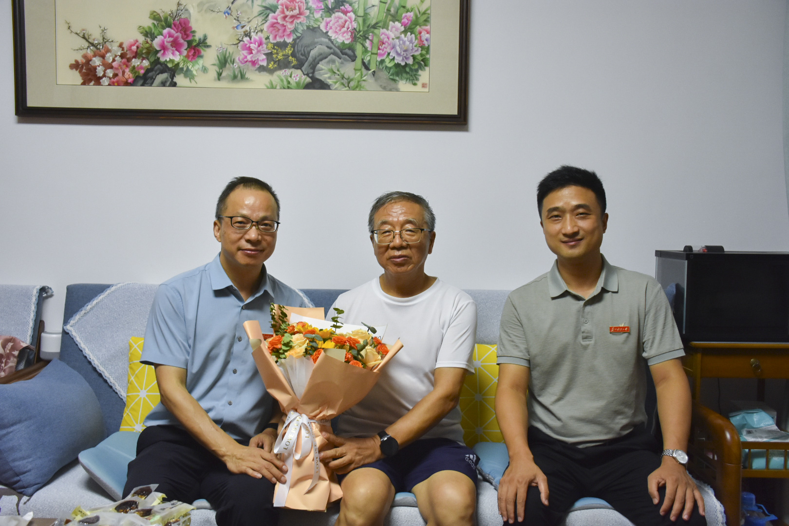 党委书记潘杨、院长李大鹏、党委副书记顾银君一行,于9月9日走访慰问石剑荣、俞印亮、李新、刘成刚退休教师代表,送上节日祝福与关怀。
