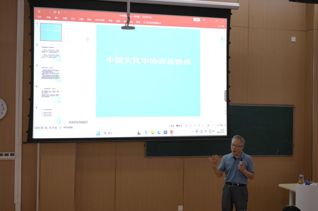 特邀关工委高为、丁国祥两位老师作理想信念专题讲座。高为老师结合从教经验,畅谈大学思维与成长路径,启迪新生踏实前行、快乐成长;丁国祥老师从中华传统文化切入,阐释“担当”精神内涵,激励学子勇担重任、不负家国。