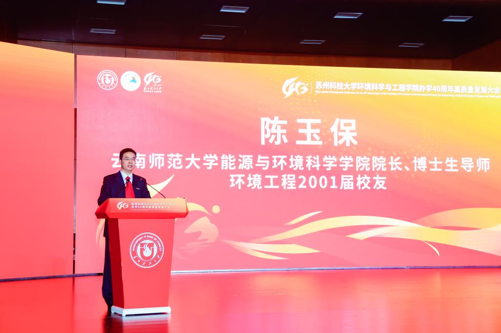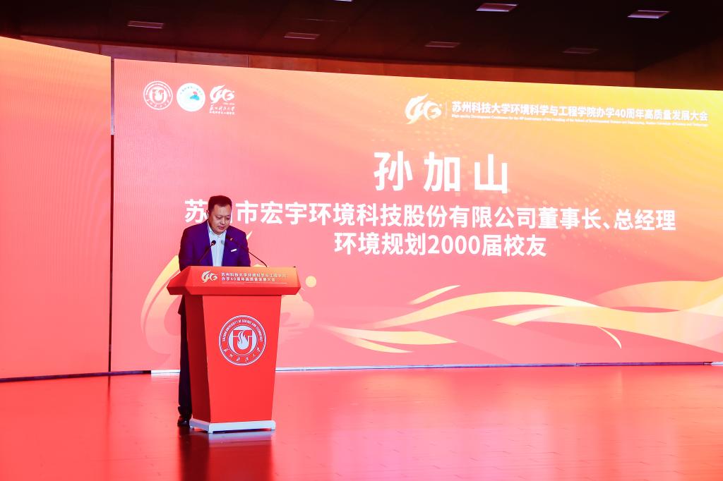 在校友代表发言环节,2000届校友、苏州市宏宇环境科技股份有限公司董事长孙加山,2001届校友、云南师范大学能源与环境科学鉴黄师