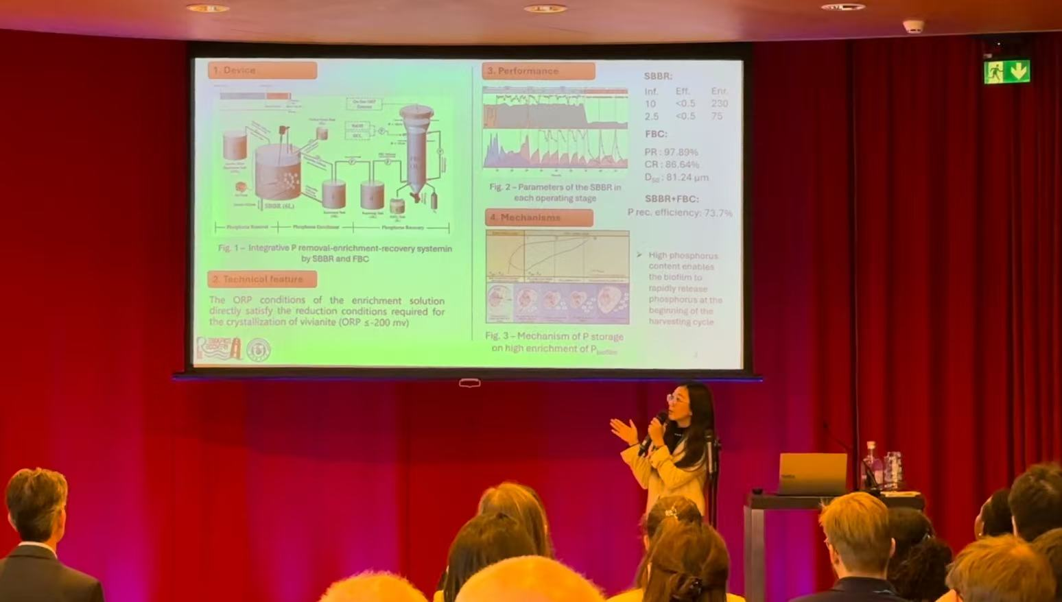 该发明专利提出了一种生物膜法富集磷及回收蓝铁矿的工艺,实现了磷的同步去除与富集,富集的高浓度磷溶液以蓝铁矿的形式进行磷产品的高值回收,解决了现行城市污水磷回收碳排放量大、产品经济价值低等问题,具有较好的经济价值和市场应用前景。该技术研发获得国家重点研发计划、国家自然科学基金重点项目等国家重大重点课题的支持,研究成果应邀在国际水协会2025年度资源回收大会(IWA RR25,荷兰)上做了汇报。目前,该技术已在苏州市某污水处理厂开展工程验证。