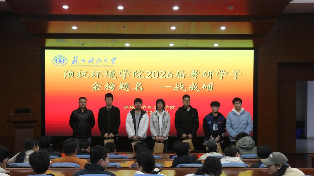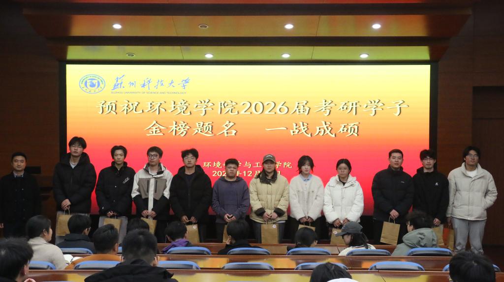 在环境楼二楼报告厅隆重举行2026届毕业生考研动员大会。学院院长李大鹏、党委副书记顾银君、副院长钱飞跃、全体毕业班辅导员出席会议,2026届考研学子代表参会。