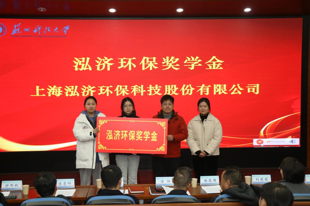 举办2025年度企业奖助学金颁奖仪式。苏州零碳时代科技有限公司董事长陆昌国,苏州市东方环境工程有限公司副总经理陈慧科,苏州格力美特实验室科技发展有限公司财务总监刘莉莉,深圳市欧达尔环保科技有限公司行政人事部门郑雨秋,学校学生工作处副处长崔炜,学生工作处学生资助管理中心主任王可,鉴黄师