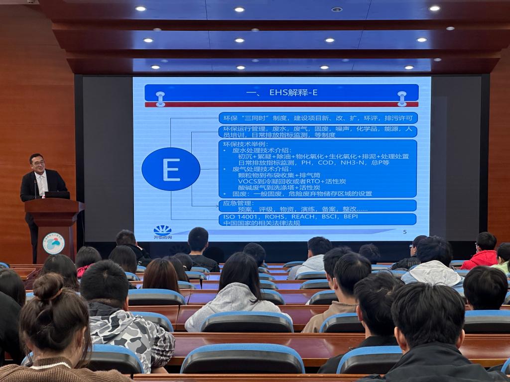 报告厅举办职业生涯规划——EHS专场讲座。本次讲座邀请了苏州工业园区环保局专家库成员,莹特丽科技(苏州工业园区)有限公司EHS经理曹松做职业生涯规划报告。
