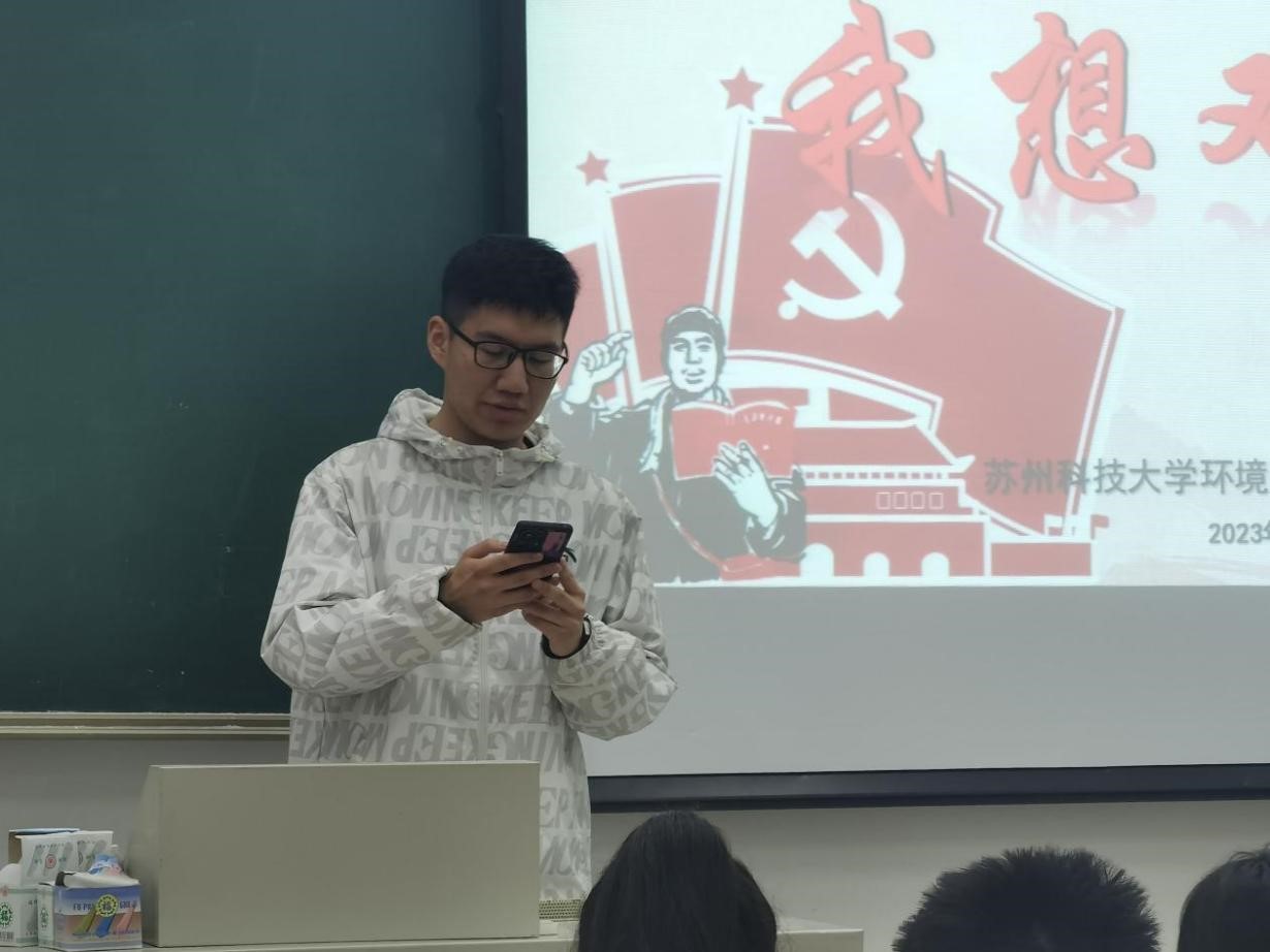 首先,全体参与同学观看学习了党的二十大相关视频,学习内容包括了党的二十大精神、习近平总书记在参加江苏代表团审议时的重要讲话以及青年学生如何发挥先锋模范作用。在学习党的二十大精神后,同学们对学习内容产生了强烈共鸣,大家围绕如何成长为新时代的好青年进行分享与交流,各位参与同学分别上台讲述了“我想对党说”的温情诉说与铮铮誓言。