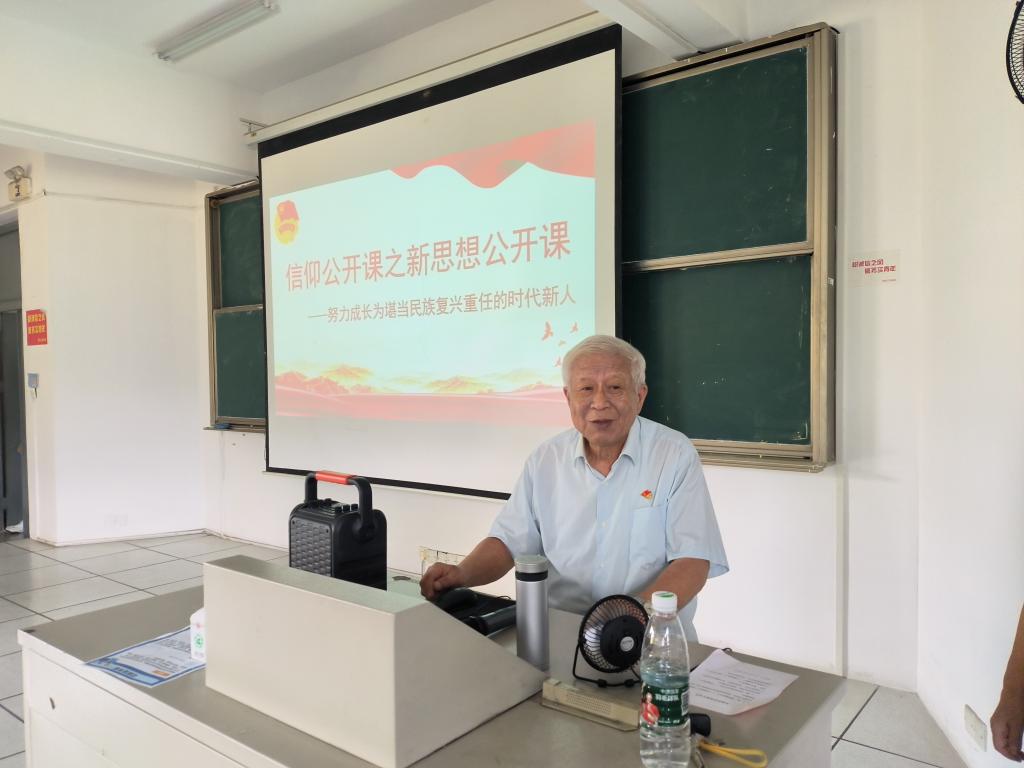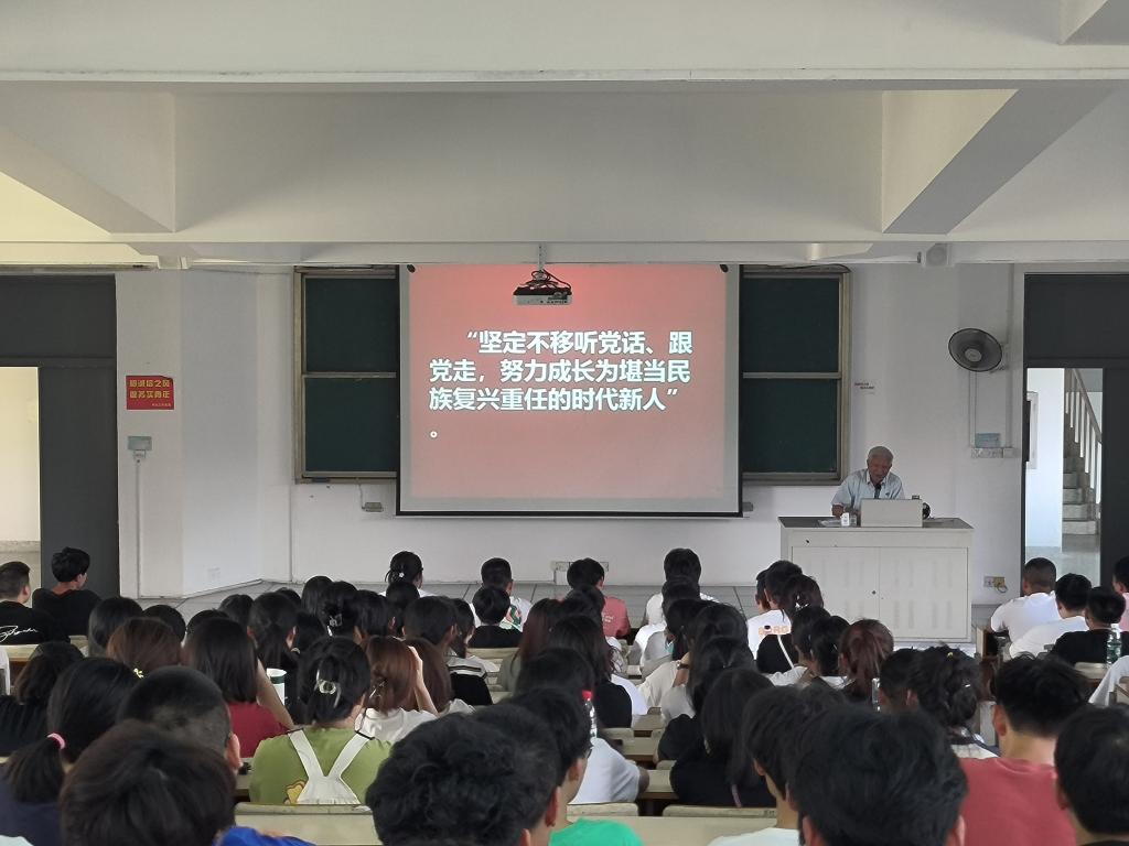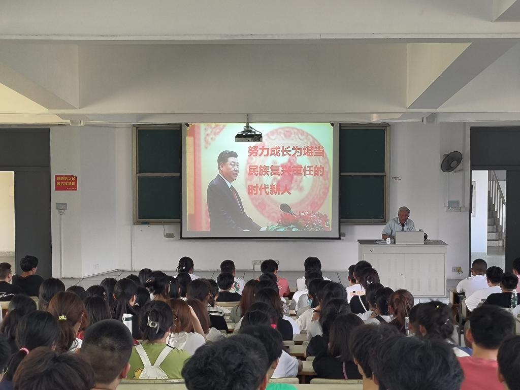 邀请校关工委沈达峰老师为全体大一新生讲授信仰公开课之新思想公开课。本次公开课的主题为:努力成长为堪当民族复兴重任的时代新人。