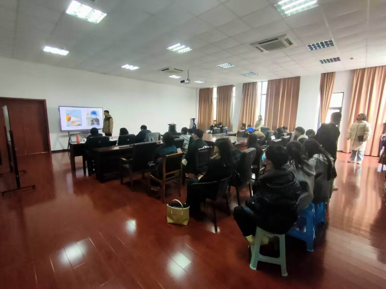 在会议室和报告厅同时举行了2023年“大学生创新创业训练计划”项目的中期答辩。