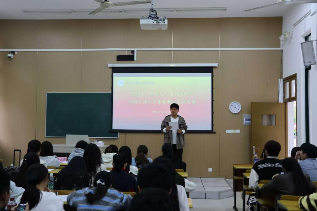 大赛以“新语纪·当代回响”为核心主题,融合主持与演讲两大环节。主持环节中,选手们凭借扎实的语言功底、灵活的应变能力完成现场展示,传递对时代与校园生活的思考;演讲环节里,选手们紧扣青年责任与担当,或慷慨激昂抒发理想,或娓娓道来分享感悟,将个人成长与时代命题紧密结合。