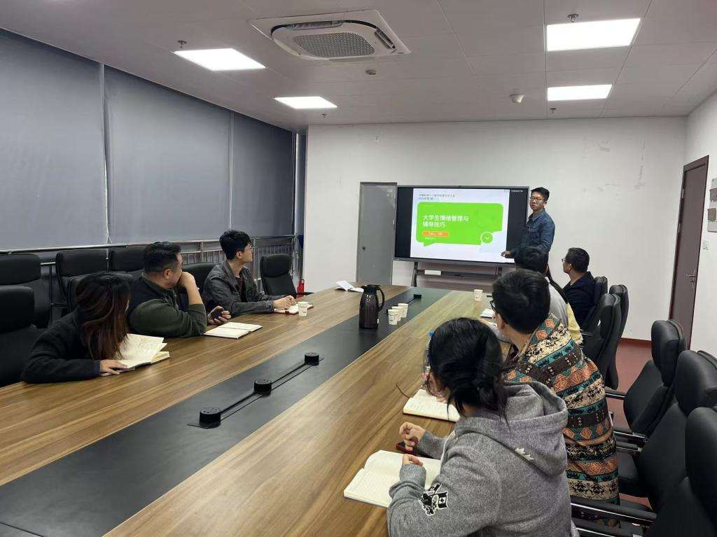 冯哲首先强调了情绪管理在大学生心理健康中的重要性,指出良好的情绪管理能力是大学生适应社会生活、实现个人发展的关键。随后,他详细讲解了情绪识别与自我调节的方法,通过生动的案例分析,帮助辅导员们掌握如何快速准确地识别学生的情绪状态,并引导学生进行有效的自我调节。