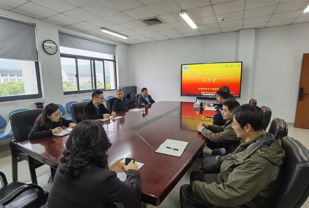 上一轮申报情况进行了总结和分析,围绕教育部、省教育厅关于一流课程申报的通知文件进行了深入解读。李勇强调,我院环境工程、环境科学、给排水科学与工程三个国家一流专业均面临课程建设的重任,申报总体方向是要建具有强理论、重实践的“应用型”课程,高度契合应用型人才培养定位。已有申报经验和基础的课程要进一步总结凝练课程特色,积极准备今年的国家一流课程申报。同时,各系要从立足长远,根据专业特色遴选和重点打造核心专业课程,为下一轮国家一流课程申报做准备。李勇还特别针对《水污染控制工程》和《环境学基础》两门课程的申报分别进行了细致分析,强调要从课程思政、基础理论、实践应用、在学生解决复杂问题能力塑造等方面进行深入挖掘,总结教学经验,形成课程特色,支撑专业的人才培养定位。
