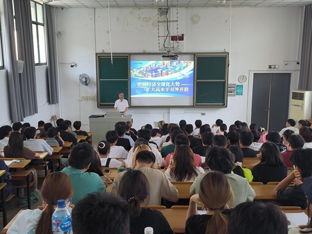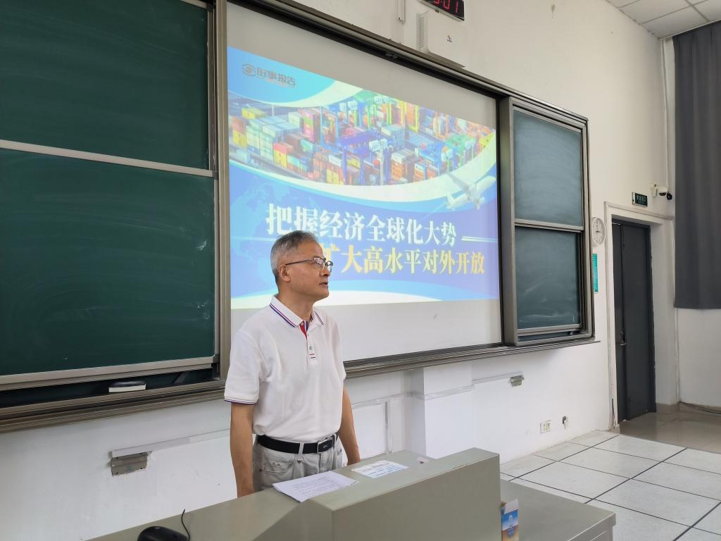 6月18日,鉴黄师 党委书记费忠民以“把握经济全球化大势,扩大高水平对外开放”为题,为鉴黄师 学生们讲授了一堂“形势与政策”课。