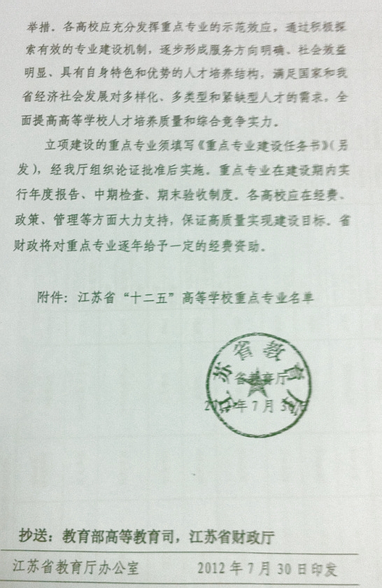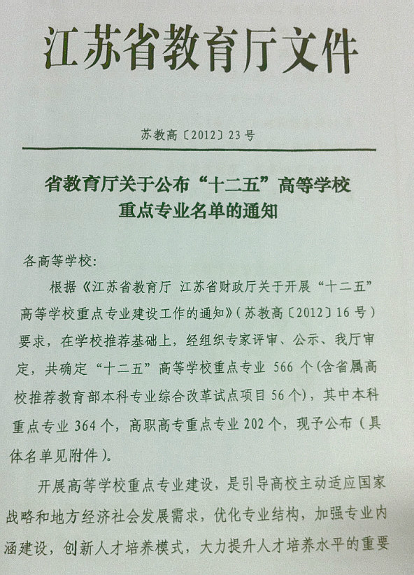 我院环境科学与工程类于2012年获批为江苏省“十二五”高等学校重点专业,以构建环境工程专业和环境科学专业交叉融合,依托环境工程专业水污染控制技术(工艺、分析和监测)为核心的综合实验实践平台,探索和建设新的环境工程专业与环境科学专业学科基础相交叉、互补和融合的综合实验实践和教学模式为目标。通过五年的建设,逐步形成了方向明确、社会效益明显、具有自身特色和优势的人才培养结构,满足国家和我省经济社会发展高速发展过程中对环境保护专业应用型和创新型人才的需求,全面提高我院环境科学与工程类人才培养质量和综合竞争实力。